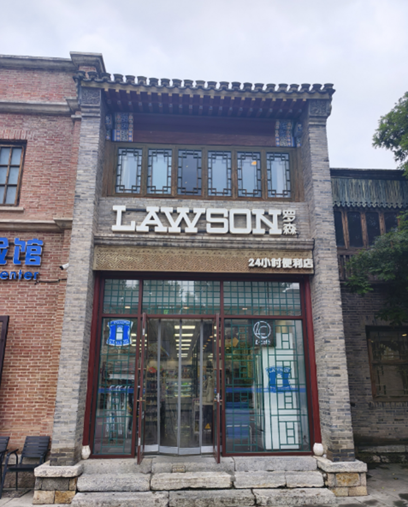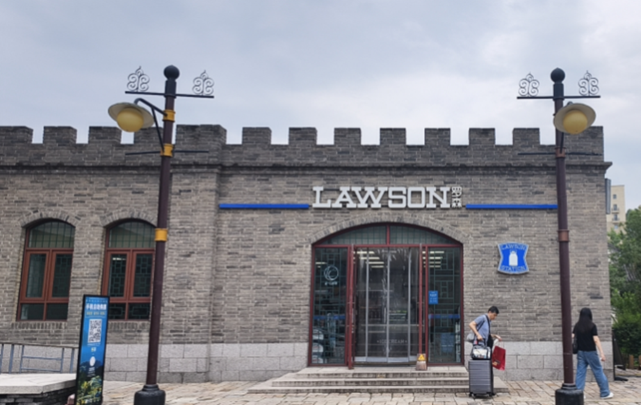 在万里长城附近有两家罗森便利店,连门面设计都融入了长城的建筑风格,很有特色,经常吸引游客驻足拍照打卡。其中,古北水镇1号店就位于正门(城墙)旁边。