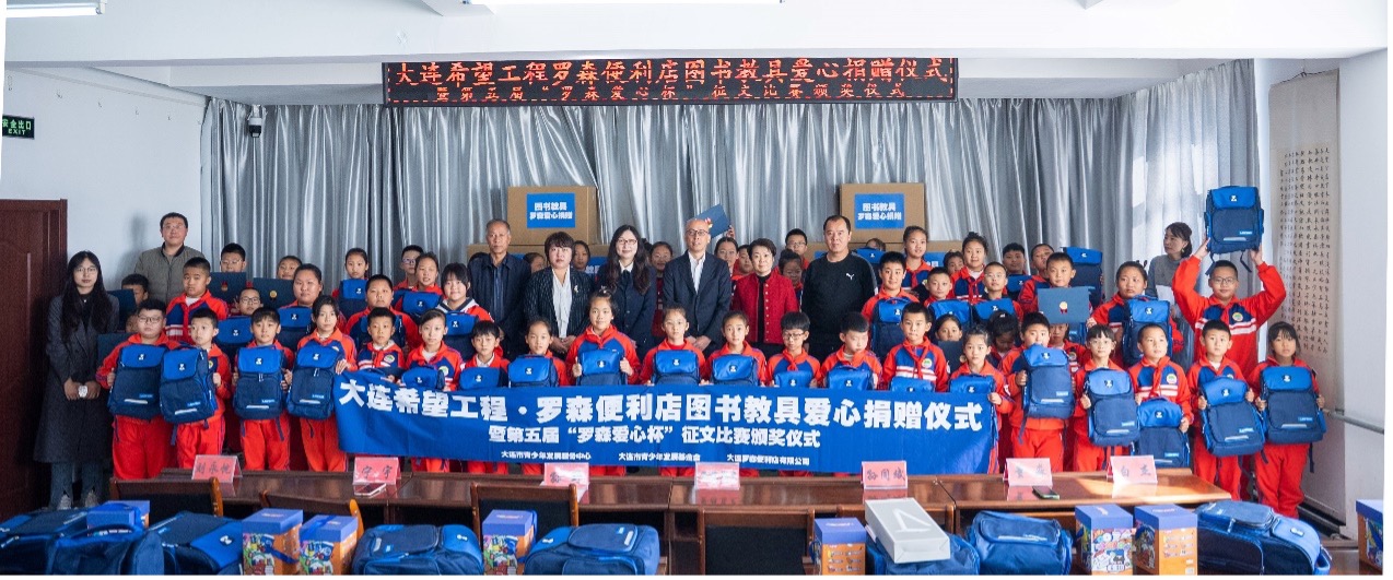 希望工程·罗森爱心图书捐赠项目是由大连罗森便利店有限公司同大连市青基会于2021年共同发起的爱心图书公益捐赠活动。五年来罗森持续助学,为了满足学校教学工作需要,为学校充实图书、购置教学设备及文体用品、将既有图书室改造为更适合孩子们的阅览室,累计捐赠超10万余元。